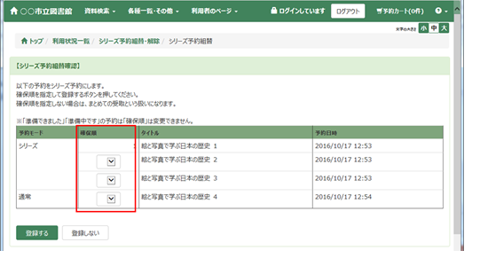 <シリーズ予約組替確認画面(確保順を指定する場合)>