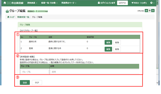 既に登録済みのグループの内容を編集する場合は、登録済みのグループ名を入力すると、編集ができるようになります。