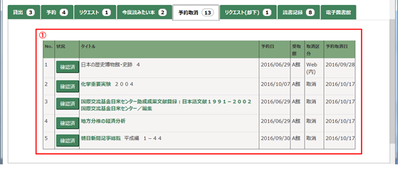 予約キャンセル可能な資料の場合にボタンが表示されます。