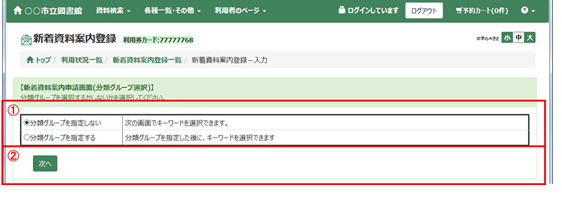 「分類グループを指定しない」を選択した場合、区分選択画面へ遷移します。