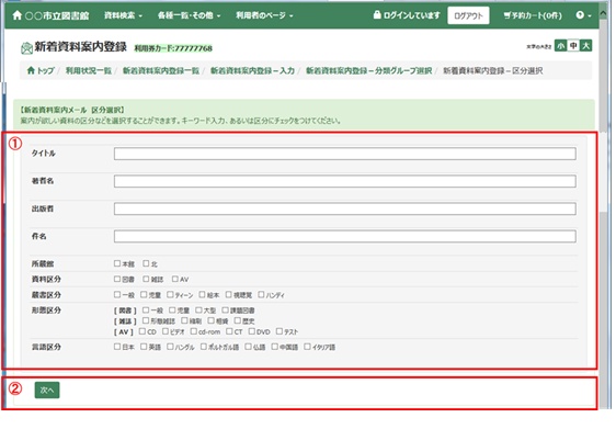 図書館から利用者へお知らせする内容がある場合に表示されます。